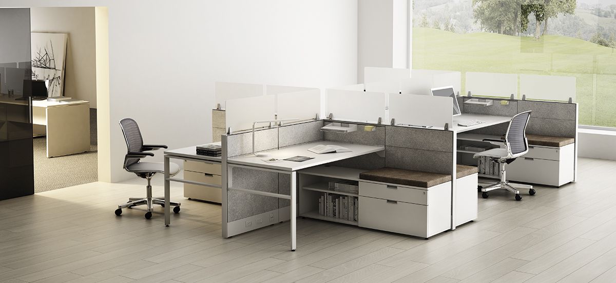 • Independent electrification at floor level, above or below worksurface.
